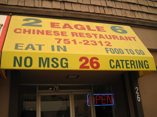 When at Eagle, try the Walnut Shrimp, the Spicy Chicken Basil, or the Spicy Lemon Grass Chicken. The Szechuan Beef w/Green Bean is also first rate as is the chow mein. For a real treat, try the Salt & Pepper Chicken Wings. Wash it all down with imported and domestic beer, soda, tea or wine. Sake and plum wine are also offered.